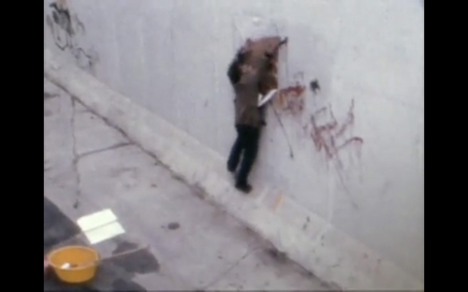 This newly assembled work is a rare document of a 1976 Matta-Clark performance in Berlin. The piece begins with the following statement: "In 1976, as part of the Akademie der Kunst and Berliner Festwochen exhibition 'Soho in Berlin,' Gordon Matta-Clark went to Germany with the intention of blowing up a section of the Berlin Wall. Dissuaded by friends from such a suicidal action, the result was the following performance." The film records Matta-Clark as he stencils 'Made in America' on the Wall, affixes commercial advertisements over graffiti, and has a run-in with the police. A remarkable record of a little-known Matta-Clark performance, this work is also a historical time capsule of a political and physical landscape that no longer exists.